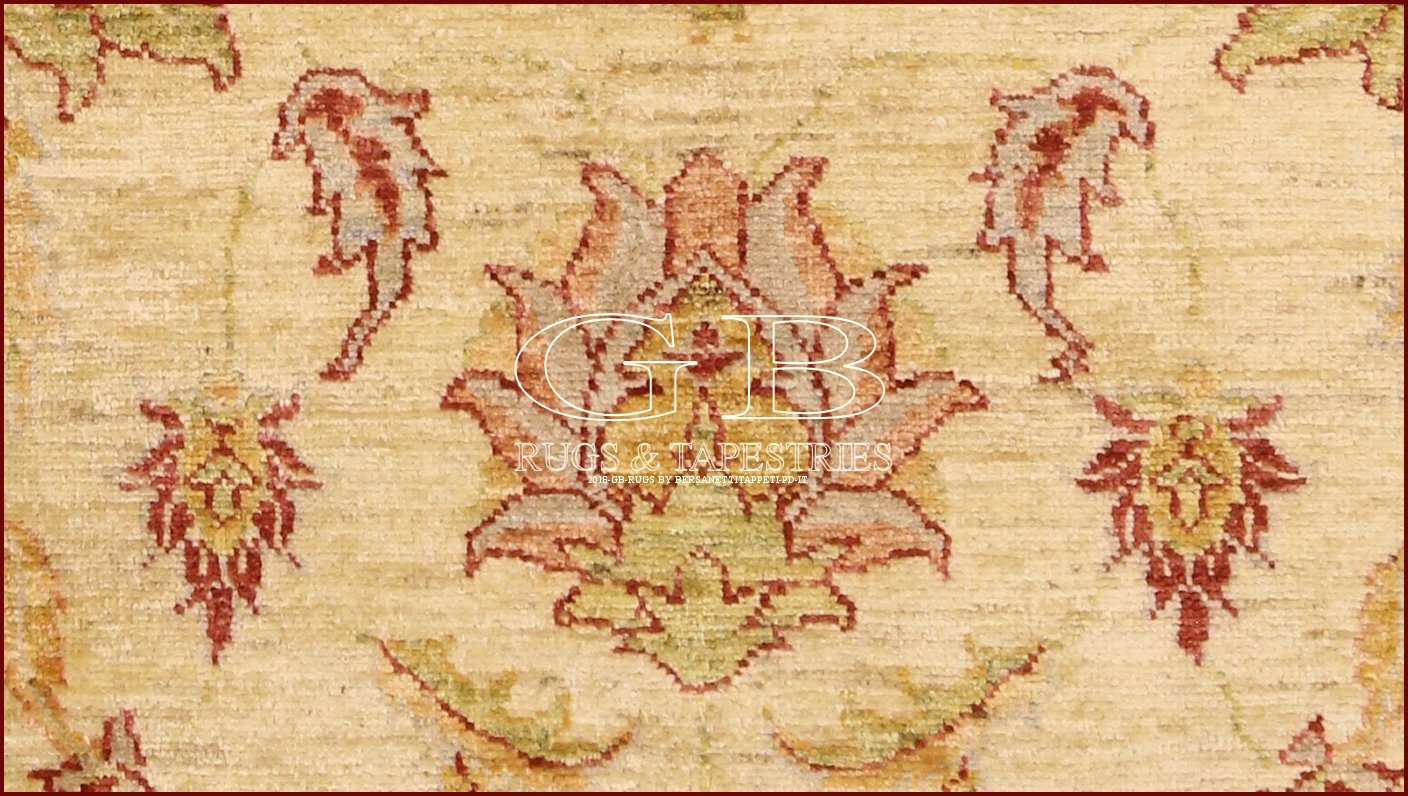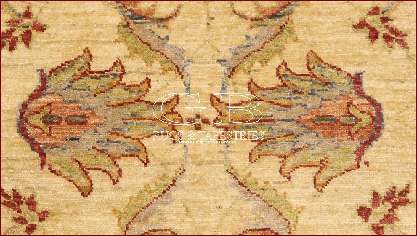 ZIEGLER TEPPICHE ist eine wunderschöne Art von handgeknüpften Teppichen aus dem Grenzgebiet zwischen Pakistan und Afghanistan. Das Blumenthema inspiriert sich von den zwischen Ende 1800 und Anfang 1900 in der Gegend von Arak, im Iran, geknüpften Teppichen aus den verarbeitenden Gewerbe der englischen-Swiss Gesellschaft Ziegler, die zu jenem Zeitpunkt über 2500 Knüpfer verfügte. Dank dem feinen Knoten und den dekorativen Mustern sind diese Teppiche sowohl für moderne als auch für klassische wertvolle Möbeleinrichtungen geeignet. Es wird nur Ghazni Wolle verwendet, die von Hand gedreht wird, was einen seidigen glänzenden Effekt macht. Die Farben sind pflanzlicher Basis.