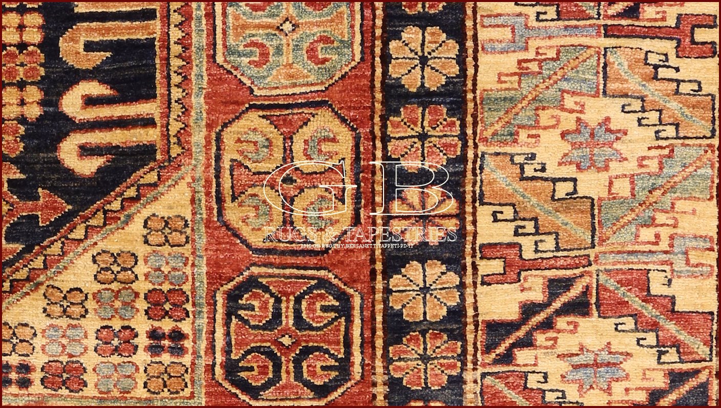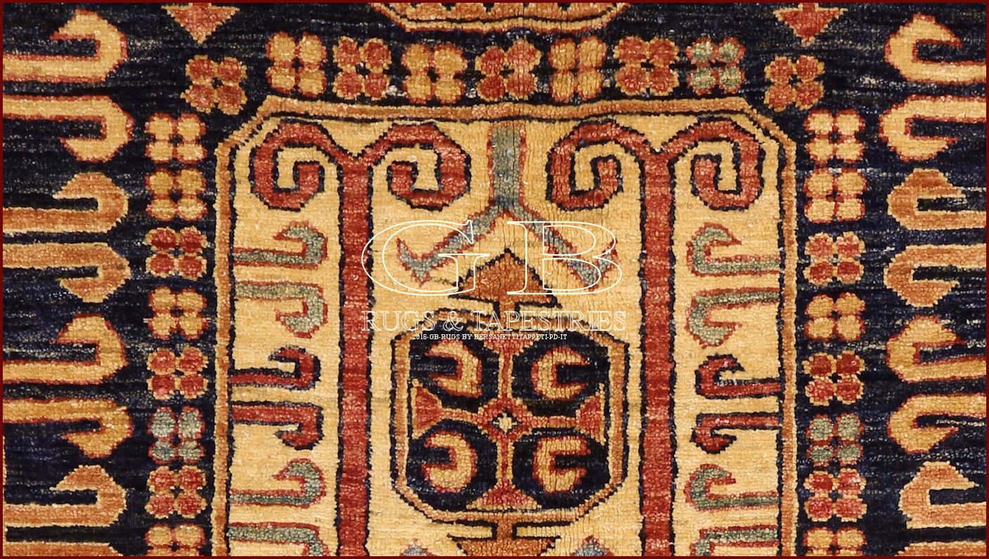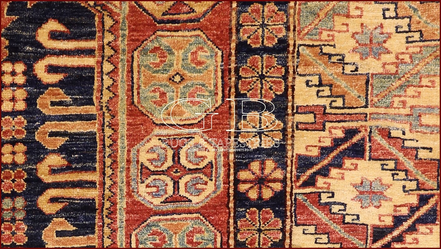 Hand knotted rugs coming from the zone of border between Pakistan and Afganistan. Worked thin with decorative patterns proper both modern and classical interiors. It's used twisted just hand twisted wool Ghazni for an very brightness silk effect. The colors are on vegetable base.