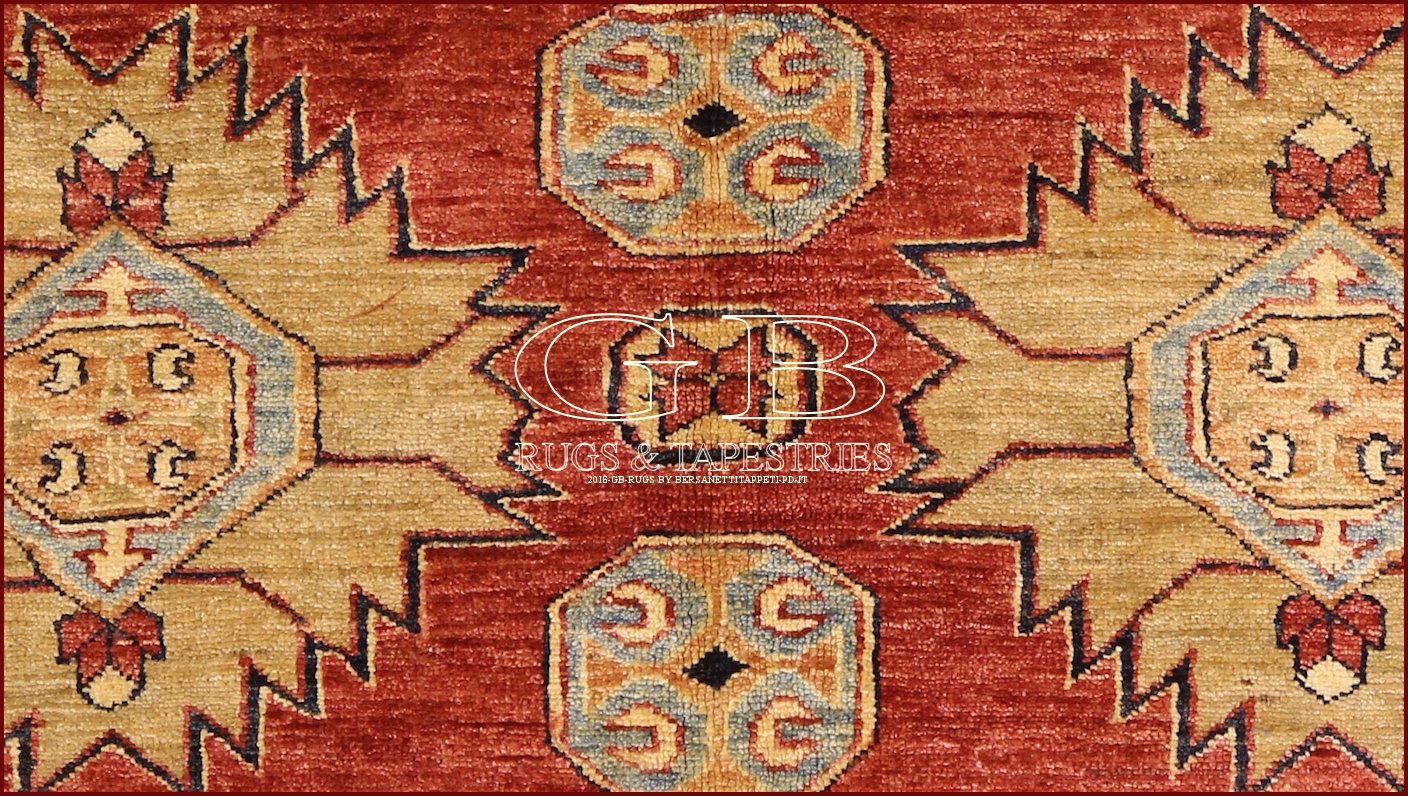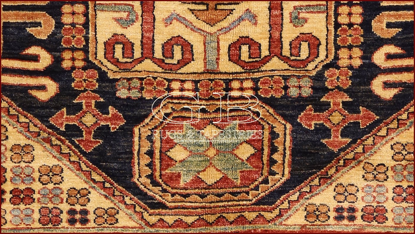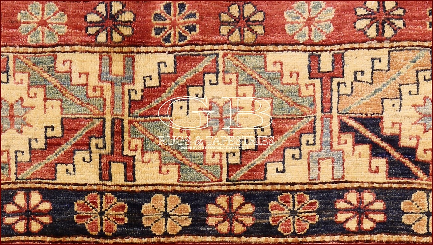 Hand knotted rugs coming from the zone of border between Pakistan and Afganistan. Worked thin with decorative patterns proper both modern and classical interiors. It's used twisted just hand twisted wool Ghazni for an very brightness silk effect. The colors are on vegetable base.