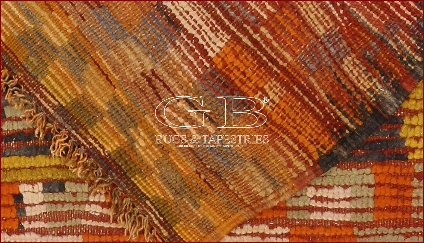 Couleurs vives, noeuds gros, techniques pièces mixtes ou local, laines brutes qui rappellent l'origine nomade, variétés incroyables de symboles et typologies immédiatement qu'ils le rendent aisément pas classable. Nous pourrions le définir un tapis rebelle, fuyant aux schémas et stéréotypes, en même temps ancestral et ultramoderne. Nous présentons dans notre collection différentes tribus, techniques, laines, symboles avec un dénominateur commun unique: le charme qui exercent sur qui les observe.