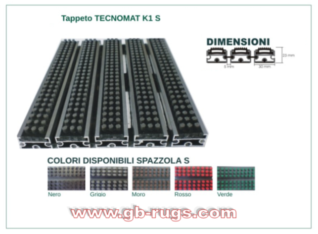 Nel tappeto sono inserite spazzole a listello allineate parallelamente per un migliore l’effetto pulente.